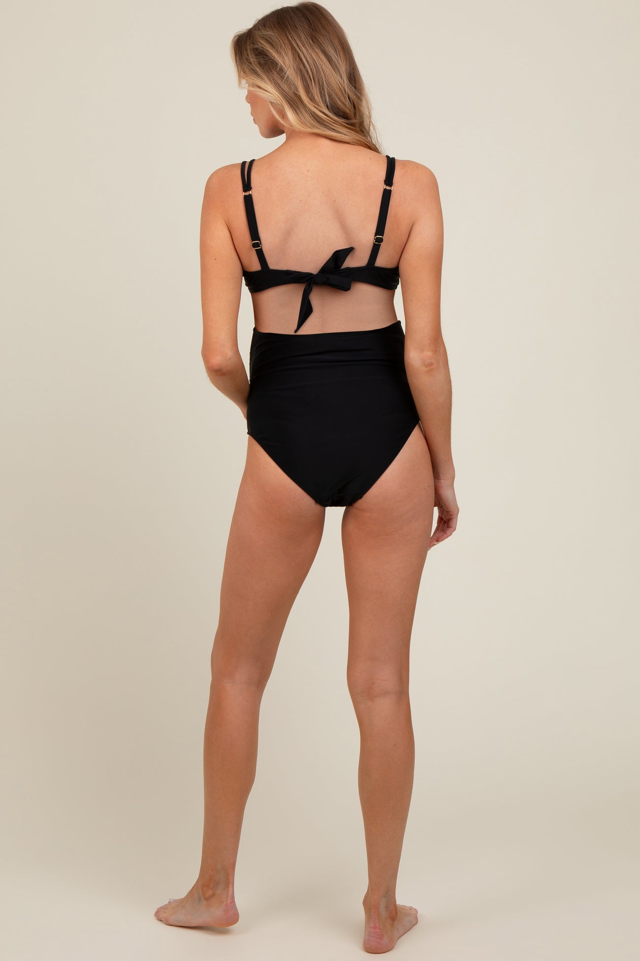 Black Scalloped V-Neck High Waist Two-Piece Maternity Swimsuit