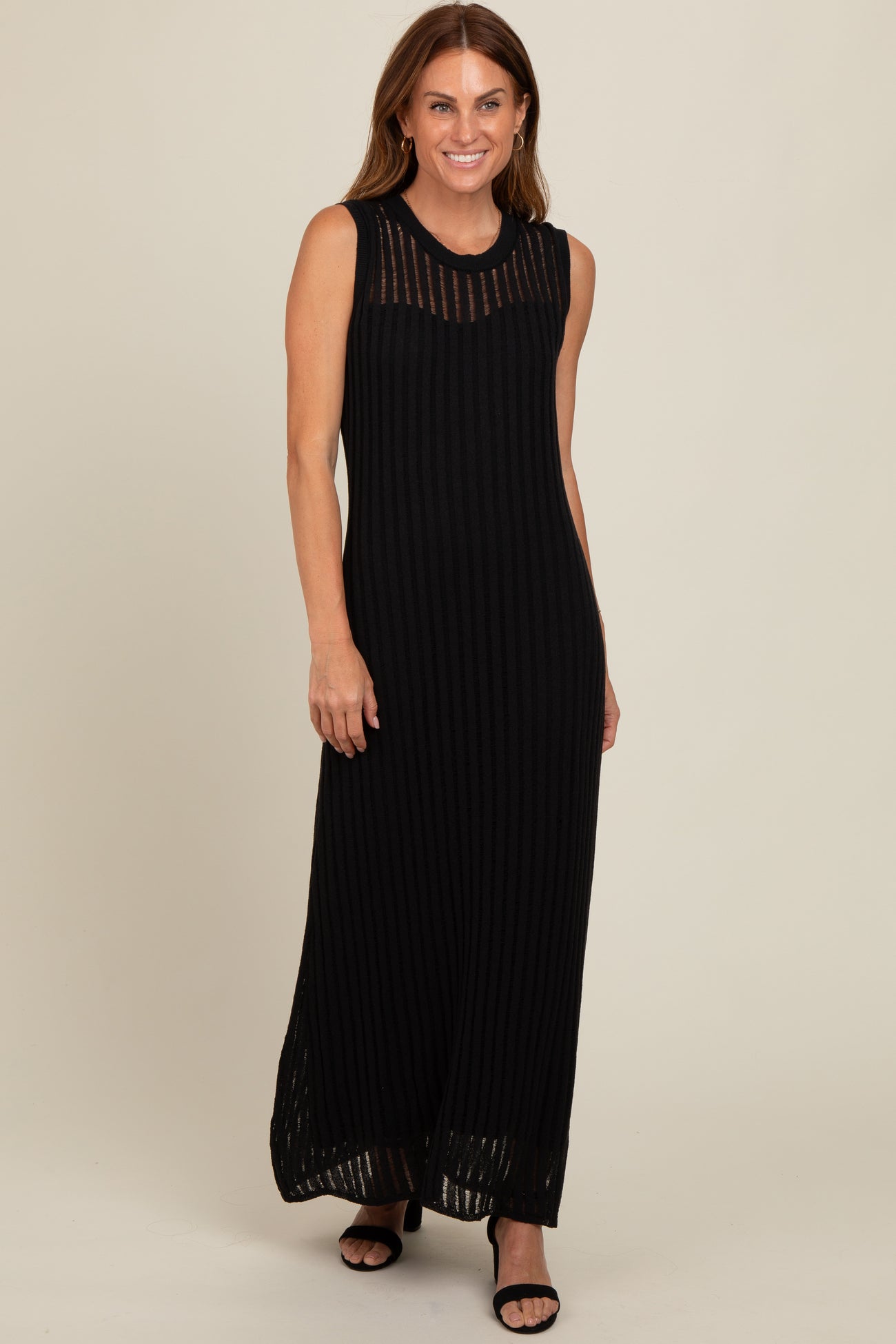 Black Sheer Knit Layered Maternity Maxi Dress