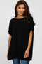 A solid maternity top with a boatneck, short dolman sleeves, and side slits at the hemline.