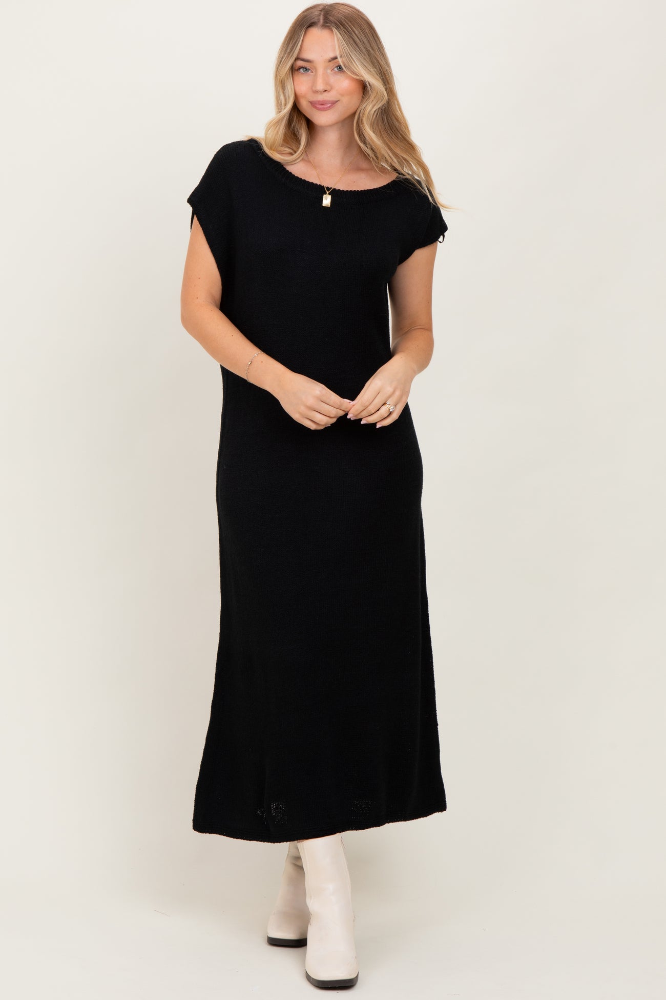 Black Short Sleeve Maternity Maxi Sweater Dress