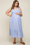 Details A solid hued midi dress featuring a smocked top, short puff sleeves and side pockets. Content + Care