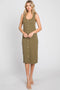 A sold crepe textured maternity dress. Features a smocked top, and gathered detailing at the waist and bottom hem.