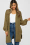 An ultra soft brushed knit maternity dress featuring a rounded neckline, long bubble sleeves, and an adjustable tie at the waist.