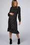 Black Soft Ribbed Folded Neck Off Shoulder Maternity Dress