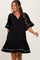Stay stylish and comfortable throughout your pregnancy with this Black Solid Short Sleeve Pocketed Maternity Dress. Designed with soft, breathable fabric, it features a loose, flowing silhouette to accommodate your growing bump. The dress has charming ruffled sleeves and hem, accented with subtle white trim for a touch of elegance. A convenient front tie neckline adds a customizable fit, while hidden pockets provide practicality without sacrificing style. Perfect for casual outings or dressing up with accessories, this versatile maternity dress is an essential addition to your pregnancy wardrobe. Easy to wear and care for, it combines function and fashion seamlessly.