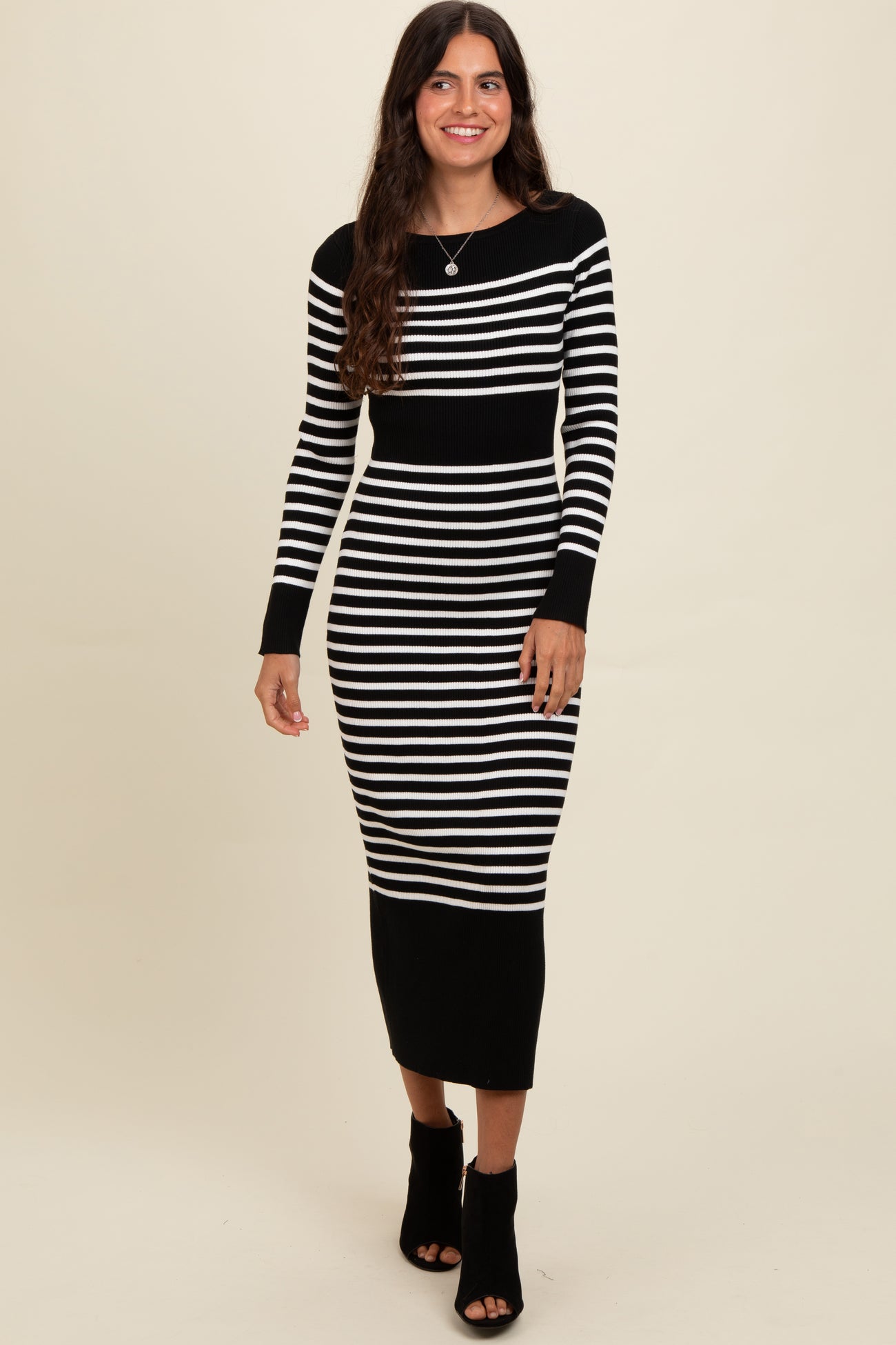Stay stylish and cozy throughout your pregnancy with our Black Striped Maternity Midi Sweater Dress. Crafted from a soft, stretchy knit fabric, this dress gently hugs your baby bump while providing ultimate comfort. The classic black and white horizontal stripes add a chic, timeless look, perfect for both casual outings and dressier occasions. Featuring long sleeves and a midi length, it’s ideal for cooler weather. Pair it effortlessly with ankle boots or flats for a trendy, comfortable maternity wardrobe staple. Embrace your pregnancy glow in style!
