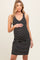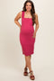 A rib knit, striped maternity dress with a scoop neckline and a racerback.