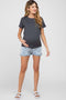 A striped ribbed midi dress featuring short cuffed sleeves, a curved hem and a rounded v-neckline.