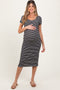 Black Striped Ribbed Long Sleeve Lace Detail Button Down Maternity Cardigan