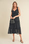 Black Textured Tie Strap Tiered Maternity Midi Dress