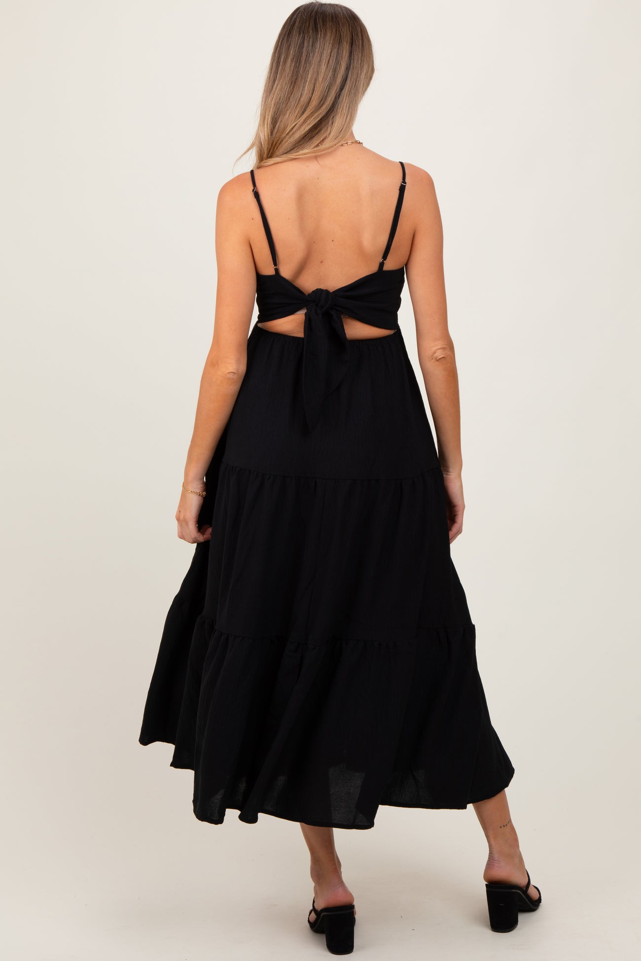 Black Tiered Cutout Tie Back Maternity Midi Dress