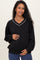Stay cozy and stylish throughout your pregnancy with our Black V-Neck Maternity Sweatshirt. Designed with a flattering V-neckline accented by a subtle white trim, this sweatshirt combines comfort and chic simplicity. Made from soft, breathable fabric with a relaxed fit, it gently accommodates your growing belly without compromising style. The ribbed cuffs and hem provide a snug yet flexible fit, perfect for everyday wear or casual outings. Pair it effortlessly with leggings or jeans for a trendy maternity look. Embrace comfort and confidence with this essential layering piece for your maternity wardrobe.