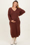 Experience comfort and style with our V-Neck Relaxed Fit Maternity Plus Sweater Dress, designed to gracefully accommodate your growing bump. Made from a soft, cozy knit fabric, this dress offers a flattering relaxed silhouette that effortlessly blends warmth with elegance. The long sleeves and ribbed cuffs provide a snug fit while allowing easy movement, making it perfect for everyday wear or special occasions. Side slits add a touch of sophistication and enhance mobility. Pair it with your favorite boots or flats for a chic maternity look that's both comfortable and fashionable throughout your pregnancy journey.