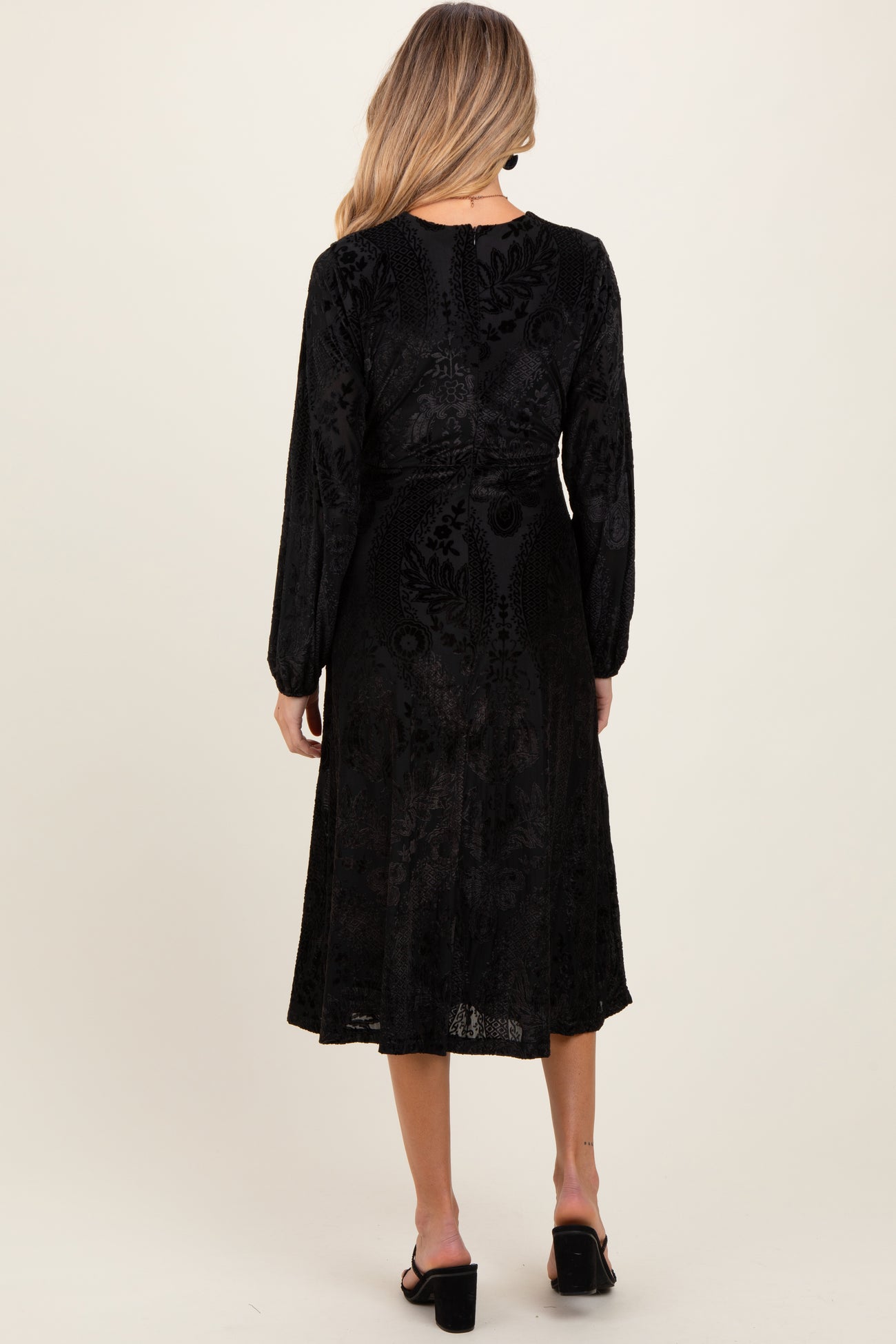 Black Velvet Damask Maternity Midi Dress
