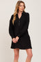 Black Waffle Knit Collared Long Sleeve Maternity Dress