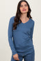 Blue Brushed Knit V-Neck Long Sleeve Maternity Top