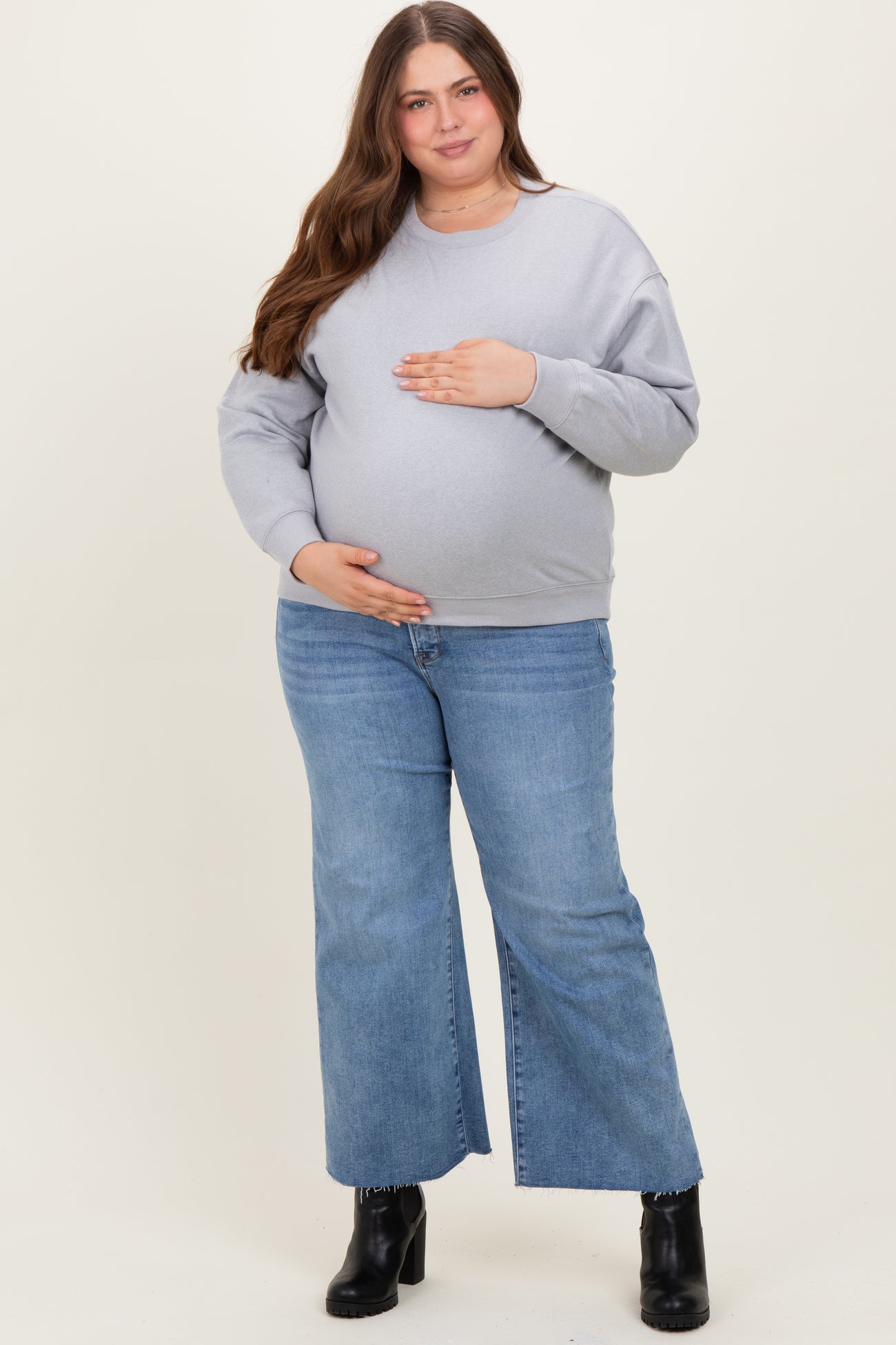 Blue Cut Hem Cropped Wide Leg Maternity Jeans