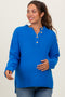 Stay cozy and stylish with our Blue Diamond Knit Button Detail Sweater. Crafted in a vibrant blue hue, this sweater features a textured diamond knit pattern that adds depth and dimension. The wooden button details along the neckline offer a charming touch, perfect for layering or wearing alone. With long sleeves and a relaxed fit, it promises all-day comfort and effortless style. Pair it with your favorite jeans or leggings for a chic casual look. Ideal for cooler days, this versatile sweater is a must-have addition to your wardrobe. Designed for both comfort and fashion-forward appeal.