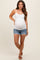 Blue Distressed Fringe Hem Maternity Denim Shorts