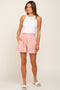 A pair of maternity shorts featuring an elastic drawstring waist and side pockets.