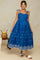 Blue Embroidered Shoulder Tie Maternity Midi Dress