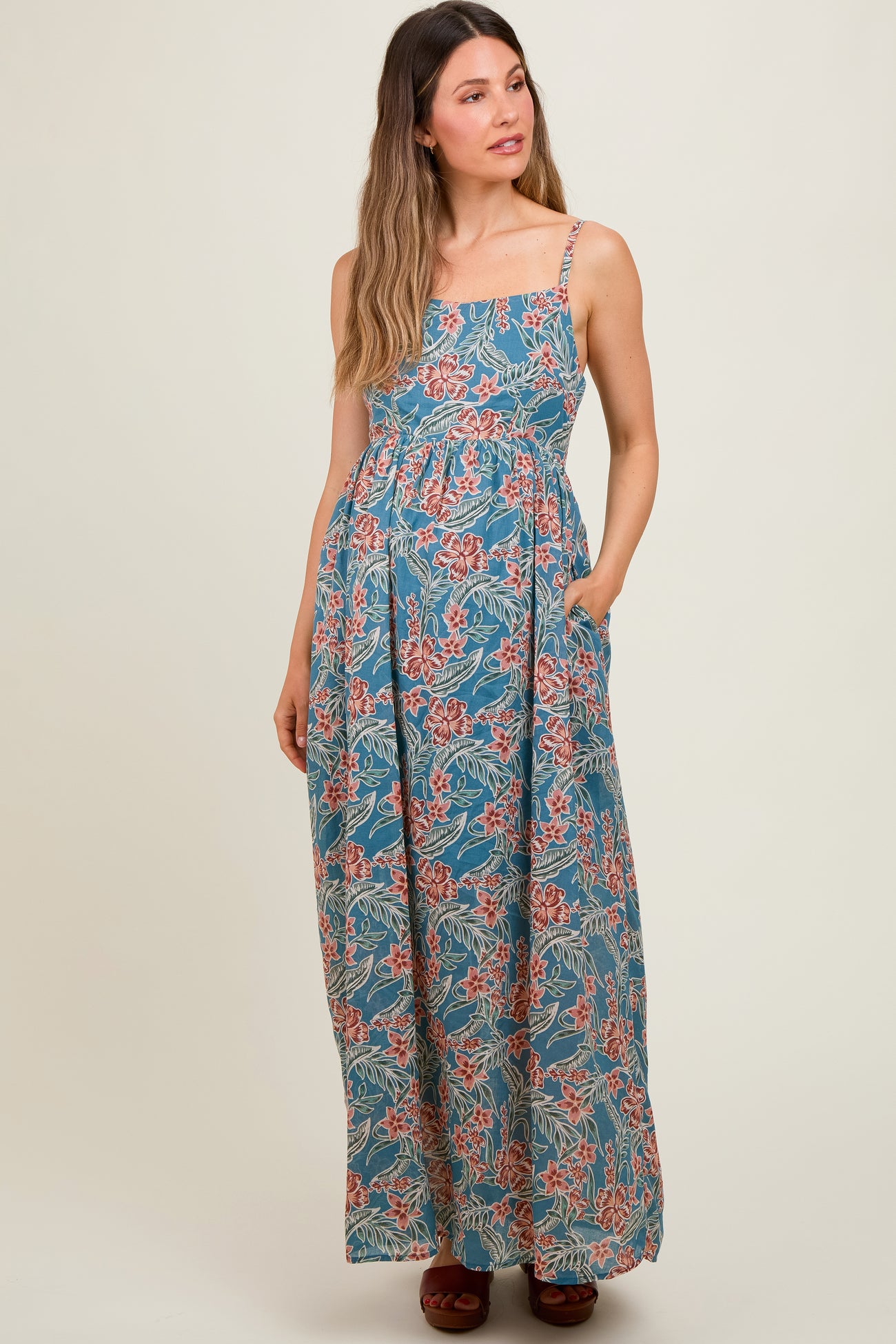 Blue Floral Lightweight Sleeveless Maternity Dress