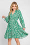 A floral print maternity maxi dress featuring a v-neckline and ruffle trim, a smocked bodice, a back cutout with an adjustable tie and an A-line skirt.