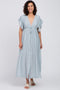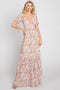 Blue Floral Sleeveless Smocked Tiered Midi Dress