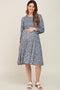 Blue Floral Smocked 3/4 Sleeve Tiered Midi Dress