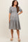 A floral print maternity midi dress with a smocked bust, puff sleeves, and ruffle hem. Pocketed.