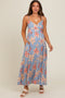 Blue Floral Smocked Puff Sleeve Maternity Dress
