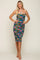 Blue Floral Sweetheart Halter Mesh Midi Dress