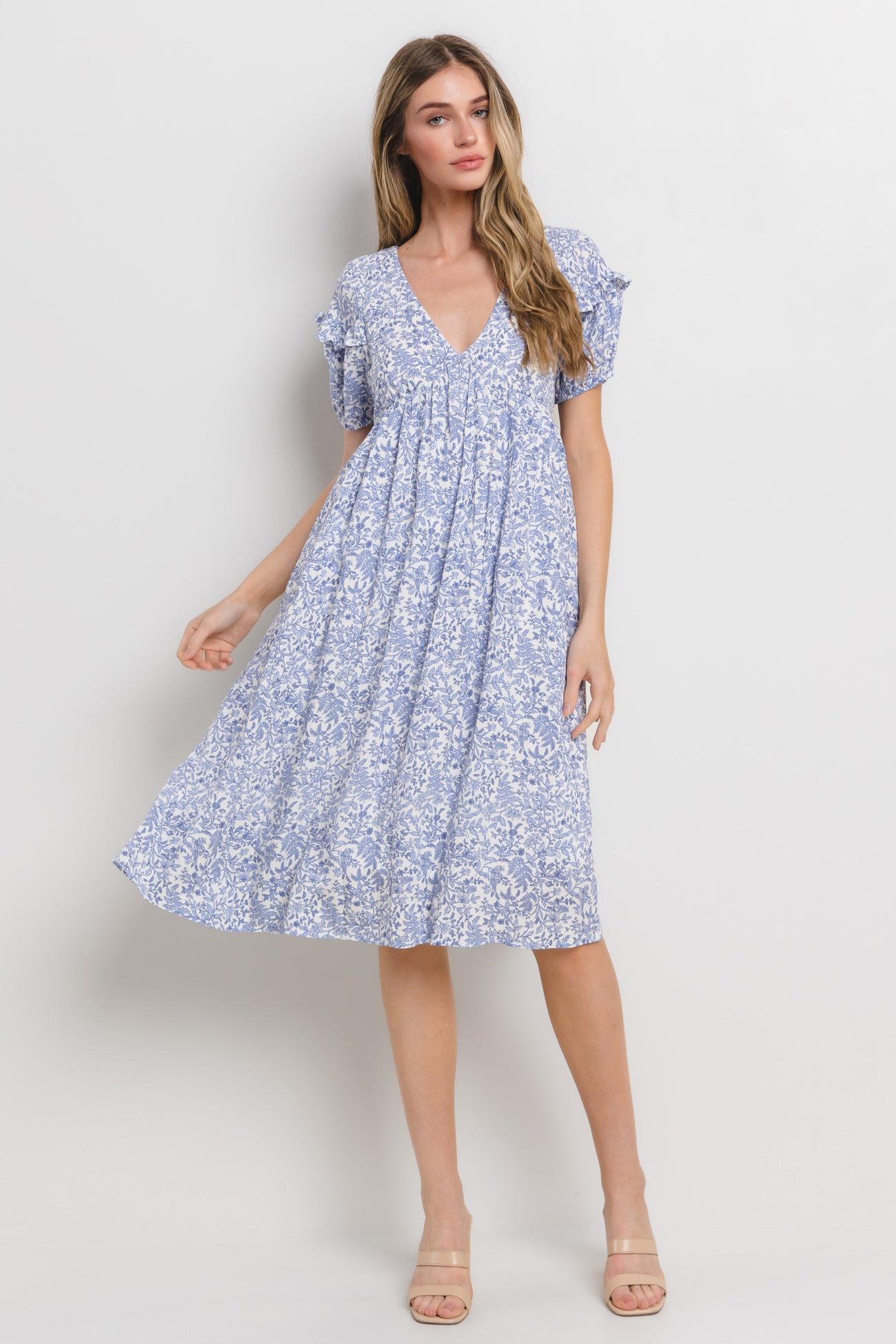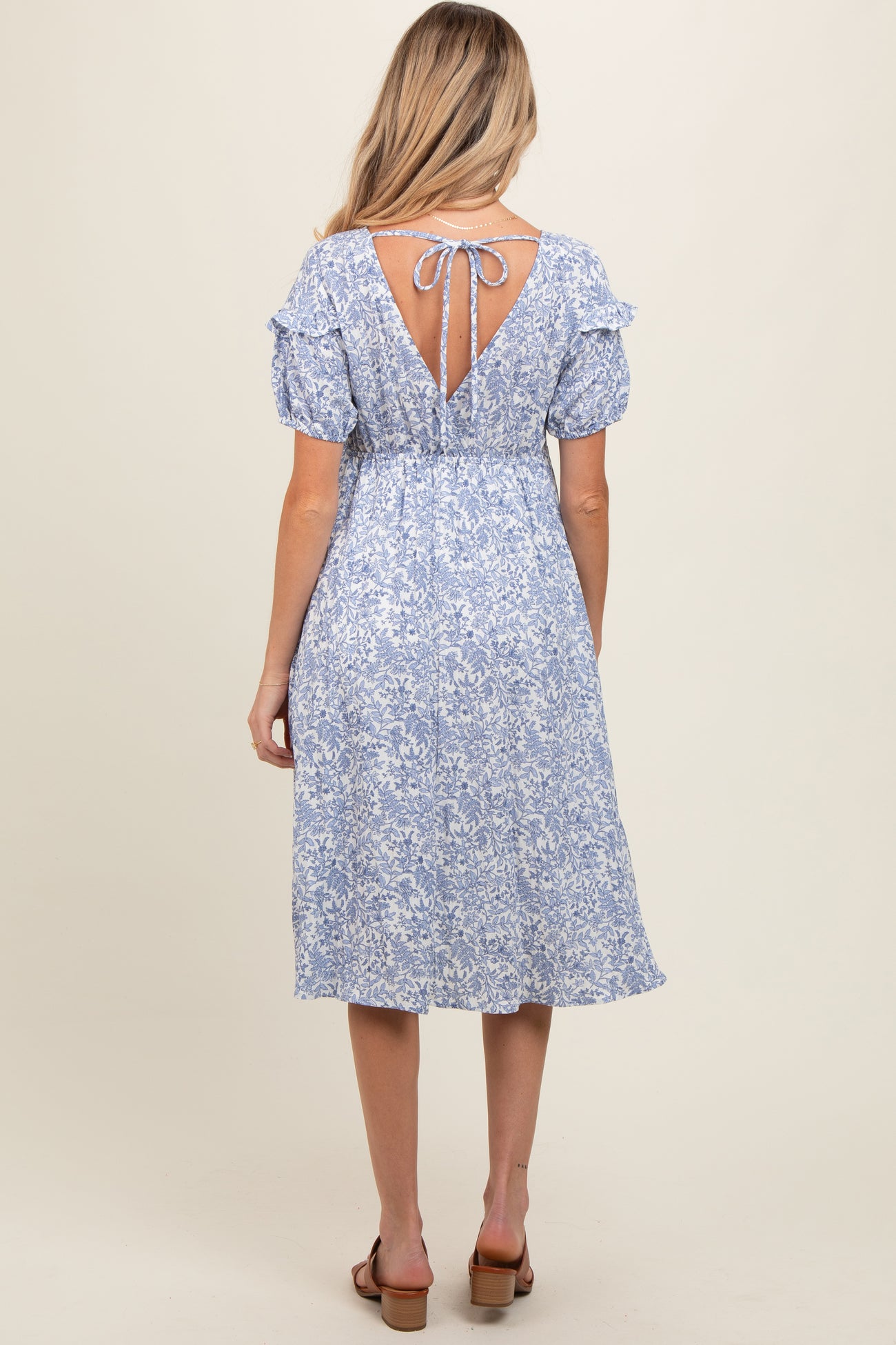 Blue Floral Tie Back Maternity Midi Dress
