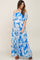Blue Leaf Print Strapless Tiered Maternity Maxi Dress