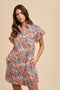 Blue Multi Floral Printed Frill Sleeve Shirt Mini Dress