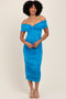 Blue Off Shoulder Ruffle Hi-Low Maternity Maxi Dress
