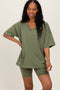 Blue Oversized V-Neck Biker Short Set