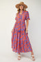 Blue Patchwork Print Shoulder Tie Tiered Maternity Maxi Dress