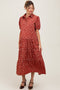 Blue Printed Button Accent Puff Sleeve Maternity Midi Dress