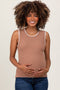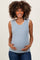 Blue Ribbed Contrast Embroidered Sleeveless Maternity Top