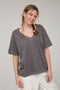 Blue Ribbed Knit Ruffle Detail Long Sleeve Top