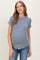 Blue Ribbed Short Sleeve Curved Hem Maternity Top