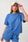 Blue Ribbed Short Sleeve Short Set