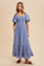 Blue Smocked Cotton Flutter Sleeve Maxi Dress