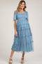 Blue Smocked Flutter Sleeve Maternity Midi Dress