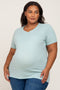 A solid hued plus top featuring short sleeves and a rounded neckline.