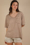 Blue Striped Oversized V-Neck Front Pocket T-Shirt