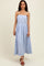 Blue Striped Swiss Dot Sleeveless Midi Dress