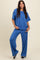 Blue Textured Knit Oversized Tee And Pants Set