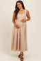 Blue Textured Plaid Drawstring Neck Maternity Midi Dress